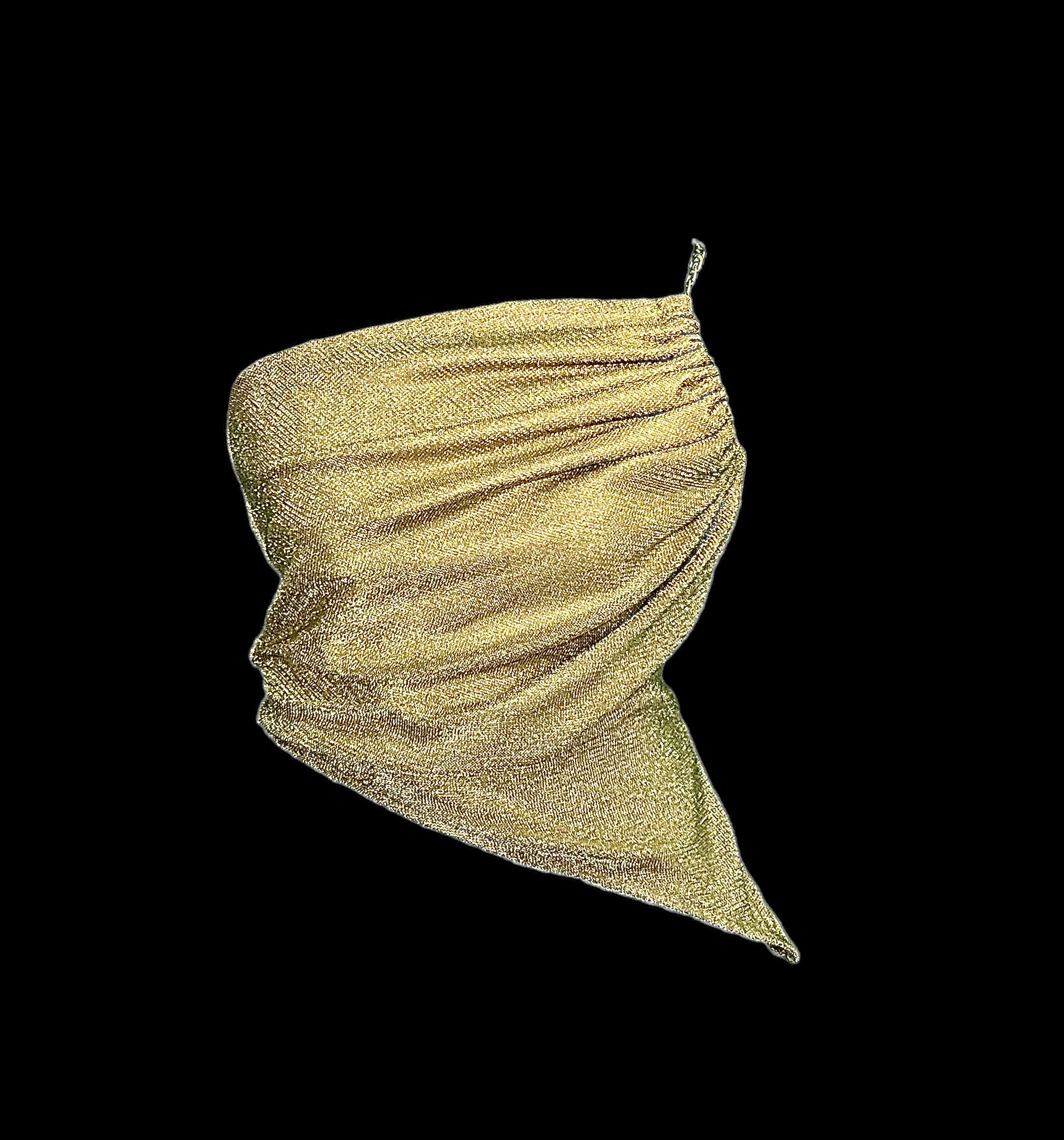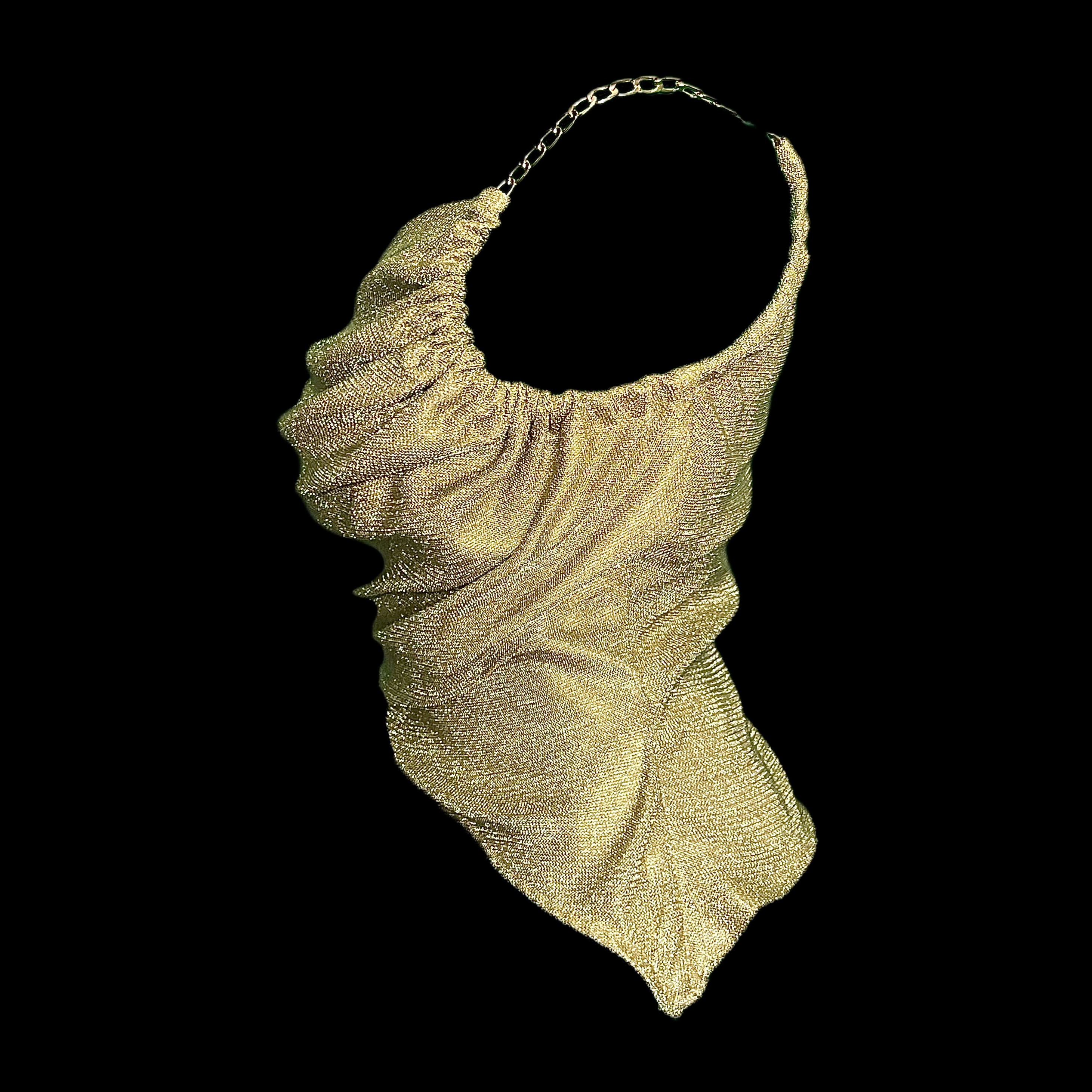 TOP: The top is a one hand piece with gold chain link for strap and an asymmetric hem