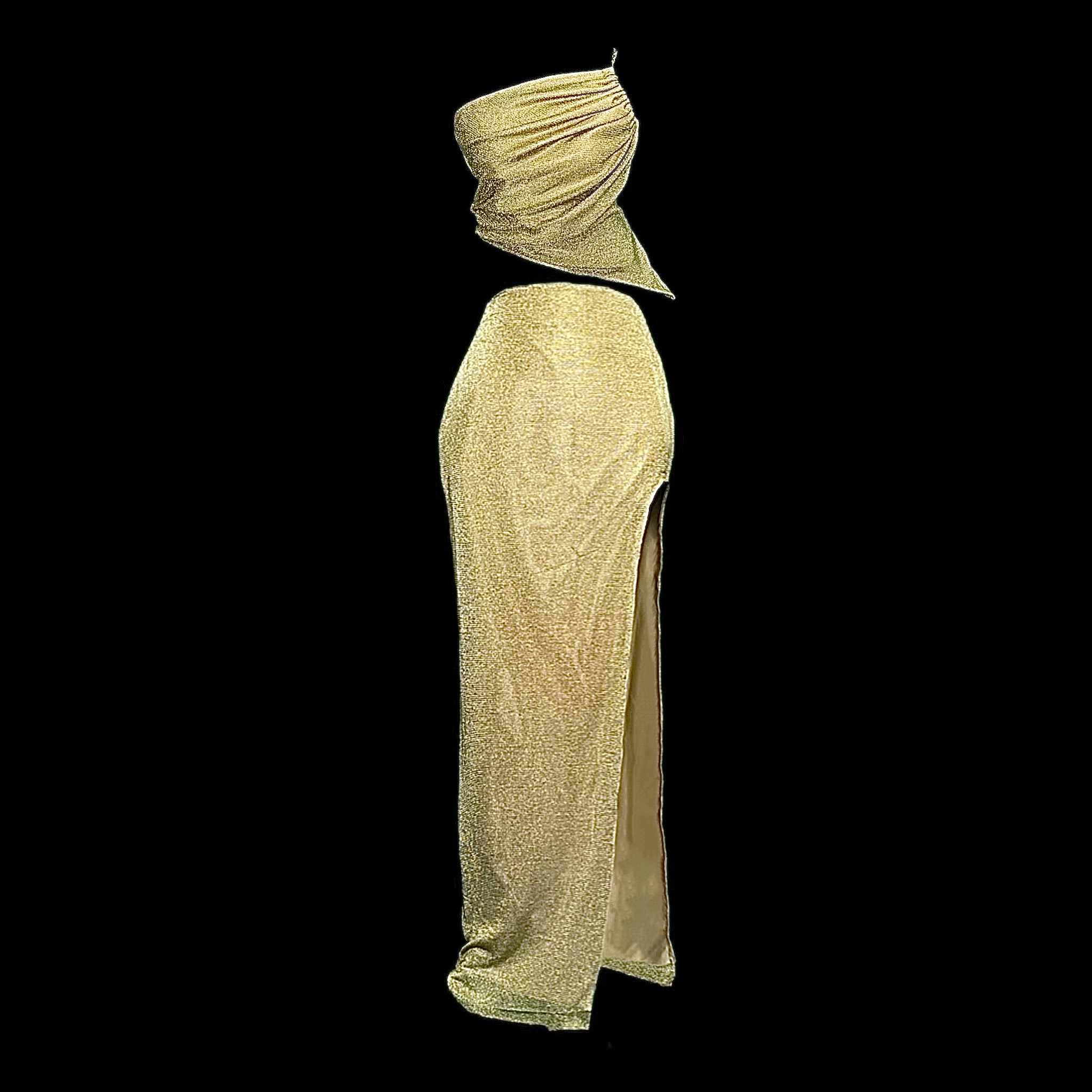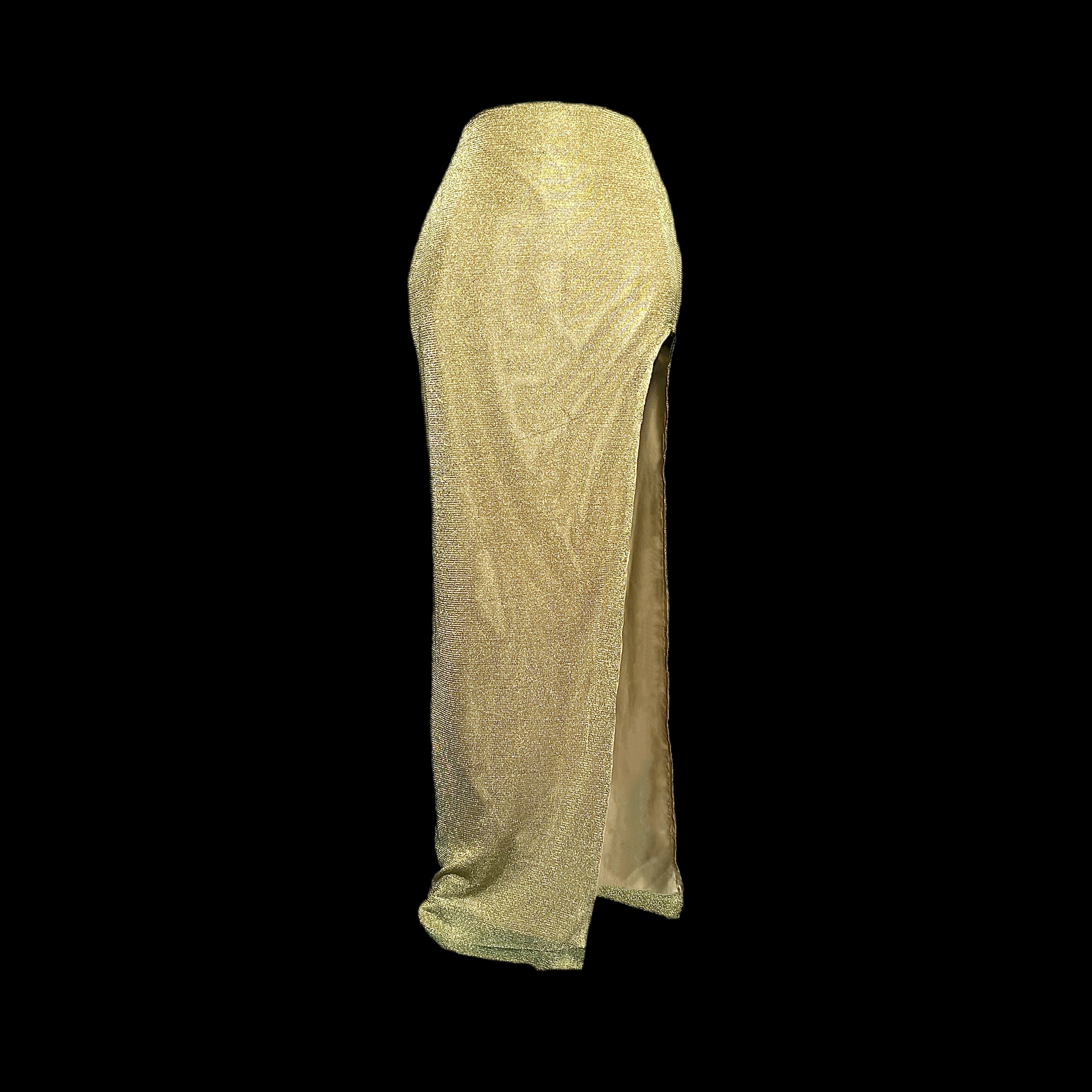 SKIRT: The Skirt is a floor length, high waisted piece with a U slit on the side