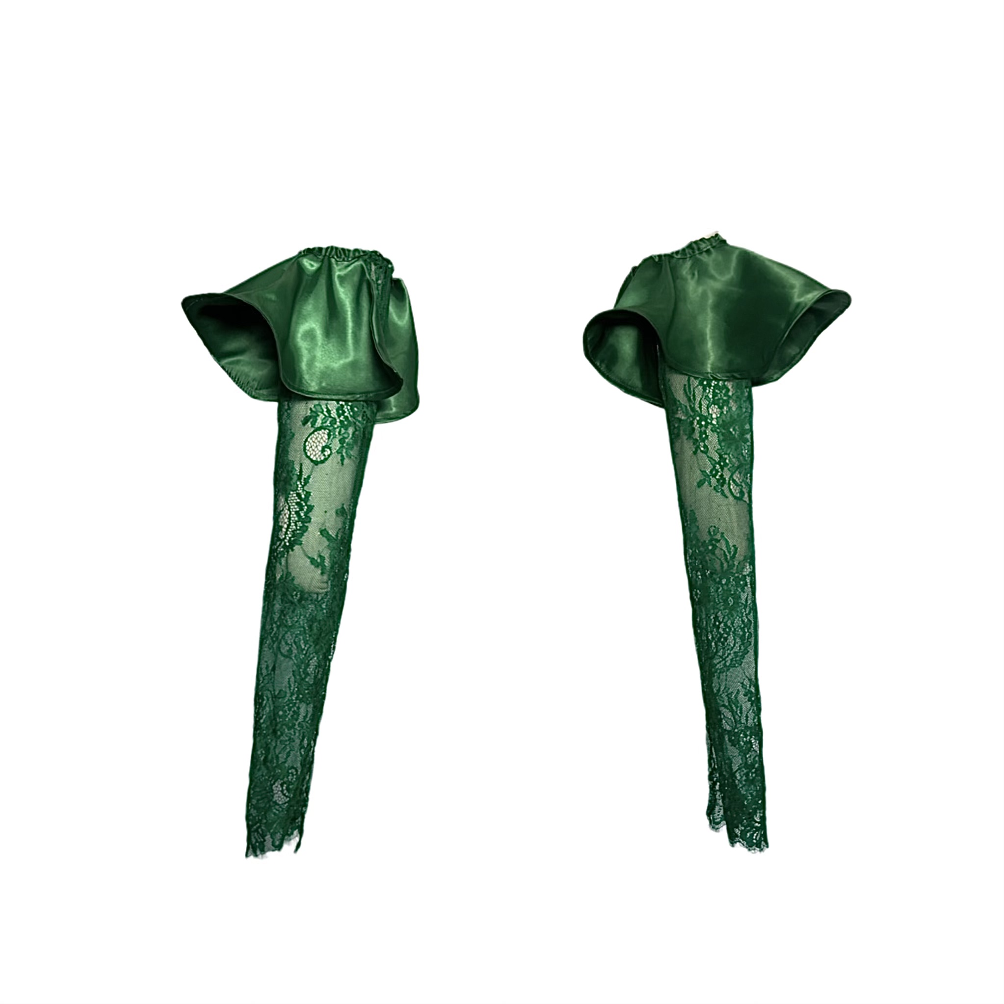 A mini lace dress with a peplum neckline and detachable sleeves